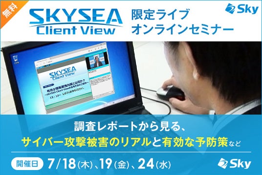 Sky株式会社は、クライアント運用管理ソフトウェア「SKYSEA Client View」を活用した情報漏洩対策やIT資産管理などについてご紹介する「SKYSEA Client View 限定ライブ オンラインセミナー」(受講費無料)を随時開催しています。