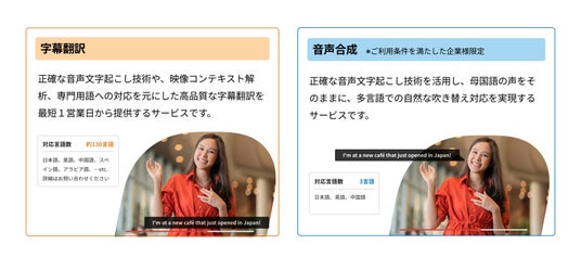 ~最大130言語に対応する字幕翻訳と、日本語、英語、中国語に対応した自然な音声合成吹き替え翻訳を提供~