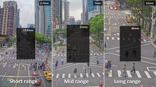 選べる焦点距離様々なニーズを満たすために考え抜かれた各モデルには、屋外用と屋内用が用意されています。多様なプロジェクトでの設置を簡素化し、利便性を高めます。右の画像は、各レンジでのカバー範囲を可視化したものです。異なる焦点距離でどのような映像が撮影されるかが分かります。