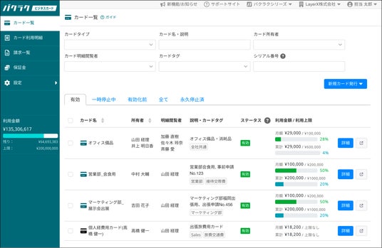 利用する“前後”の業務もラクになる、次世代の法人向けビジネスカード。利用料無料、即日追加発行、1億円以上の決済が可能になる柔軟なご利用枠。内部統制や証憑管理も効率化、ご利用用途ごとに従業員へ何枚でも発行可能。