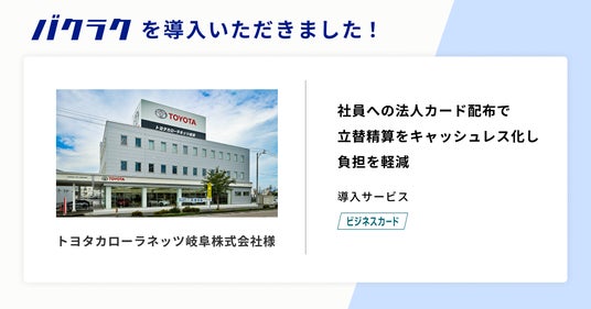 岐阜県下最大級のカーディーラー、トヨタカローラネッツ岐阜が「バクラク」を導入。法人カード配布で立替経費のキャッシュレス化を促進