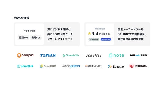 事業内容 : Webサービス、モバイルアプリのUI/UXデザイン、CIデザイン、DXデザイン