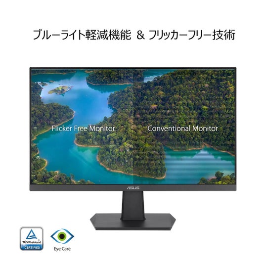 。TUV Rheinland認証を取得した目にやさしいブルーライト軽減機能とチラつきをなくすフリッカーフリー技術を搭載