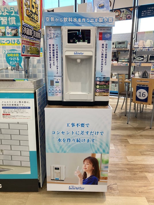 2023年に発売を開始した空気製水器は主にオンラインショップでの販売でしたが、上記の家電量販店の実店舗にて取り扱いを開始しました。