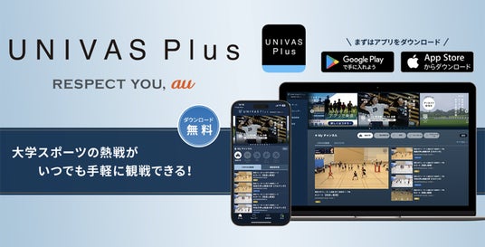 UNIVAS に加盟する30競技以上の試合映像が視聴可能な大学スポーツファン向けアプリです。8,000 本以上の大学スポーツの試合映像を保有しており、試合映像のライブ配信やアーカイブ映像の一部が無料でお楽しみいただけます。2022年10 月には「UNIVAS Plus プレミアムプラン」がスタートし、ご加入をいただくと複数試合が同時にライブ観戦できるマルチビュー機能や1試合を複数の視点で観戦できるマルチアングル機能、PC の大画面で視聴できるマルチデバイス機能、過去の試合のアーカイブ映像が見放題となるサービスが付与され、新たな視聴体験を楽しむことができます。