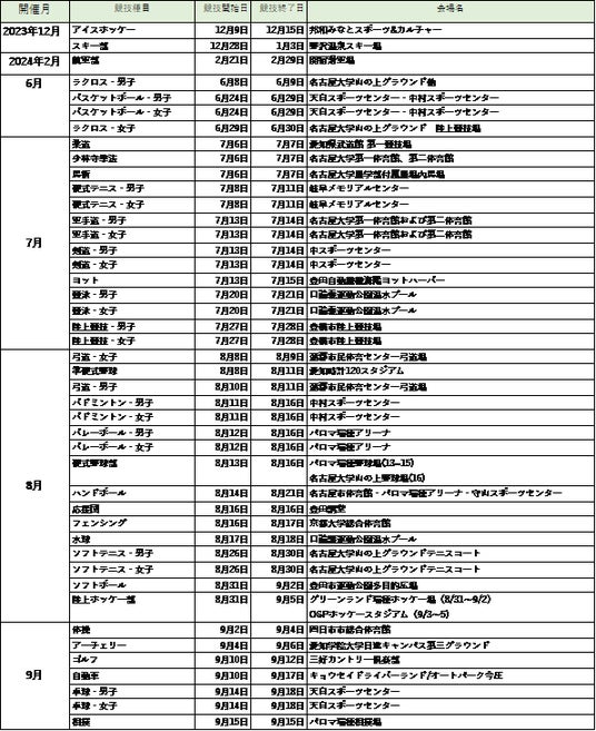 ▼大会スケジュール(44競技)