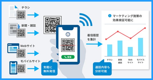 これまで、コールセンターやお問い合わせ窓口における電話記録は、マーケティングデータとして活用することが困難でしたが、「MiiTel Scan to Call」を利用することにより自動的に情報の蓄積が可能になります。新聞・雑誌・チラシ等の紙媒体にQRコードを掲載することで、紙媒体を含むあらゆる広告の効果測定を容易に行うことができます。これにより、定量データに基づくマーケティング分析が可能となり、より精緻なマーケティング戦略構築に活かすことができるようになります。