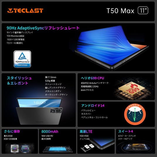 「新品発売」Teclast上位タブレットT50 Max登場!Amazon発売、最安値¥27,900円購入でき!11インチ|90Hzリフレッシュレート | 20GB+256GB | Helio G99