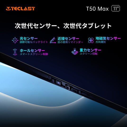 Teclast T50 Maxタブレットは、直感的なユーザーエクスペリエンスのための先進的なセンサー群を搭載しています。繊細なコントロールのためのジャイロスコープ、正確な方向識別のための地磁気センサー、スマートな画面回転を可能にする重力センサーが搭載されています。また、画面の明るさを調整できるほか、包括的な画面制御も備えており、これらすべてがシームレスでユーザーフレンドリーなインタラクションを実現します。