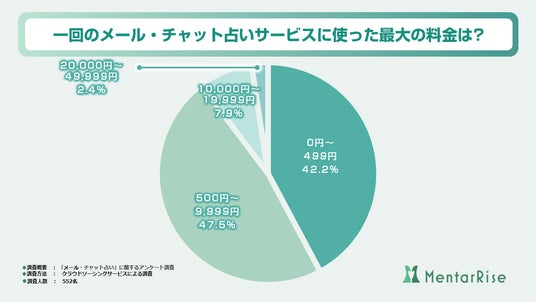 「一回のメール・チャット占いサービスに使った最大の料金はいくらですか?」という質問に対して得られた結果は、上記の円グラフのようになりました。