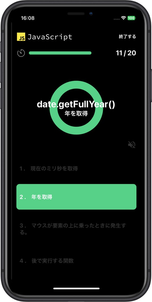 英単語の学習アプリのように、プログラミングの単語が学べます。