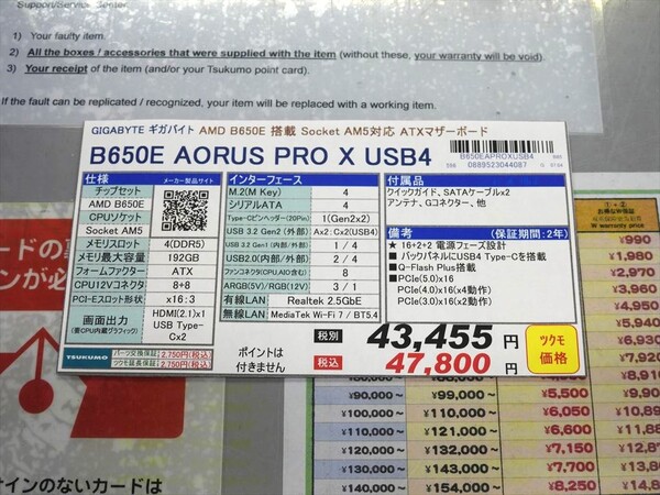 GIGABYTEから、AMD B650Eチップセット搭載マザーボード「B650E AORUS PRO X USB4」が発売された。価格は4万7800円。秋葉原ではパソコンショップアーク、パソコン工房 秋葉原パーツ館、ツクモパソコン本店、TSUKUMO eX.で販売中だ。