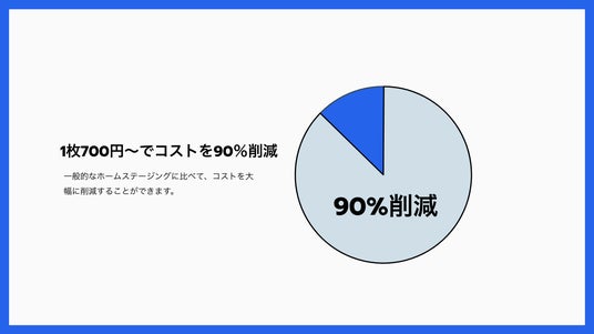 弊社ヒヤリングによると、AIバーチャルホームステージングを導入してからは、1枚700円しかかからず、「コストを90%削減することができた」とのことでした。