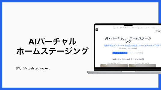 (株)VirtualStaging.artが運営する「AIバーチャルホームステージング」は、家具なしの物件写真をアップロードするだけで、AIを使って30秒以内に家具付きの写真を生成できる物件写真加工ツールです。