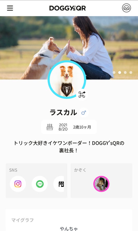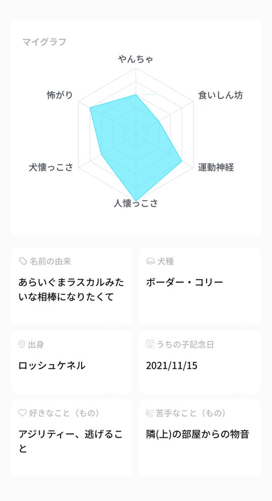 プロフィールページには様々な愛犬の情報を登録でき、飼い主が自由に設定することができます。