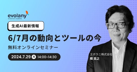 【エボラニ株式会社】2024年7月29日(月)14:00~14:30 生成AI最新情報 無料オンラインセミナー「6/7月の動向とツールの今」