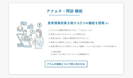 このたびのアナムネ・問診機能の設計として、紙の方が書きやすい方は紙で、デジタルの方が入力しやすい方はデジタルで、ただし情報出力は同じフォーマットで行います。また、医療サービスの質を上げる点において対象加算などの判定をデジタルで支援をいたします。