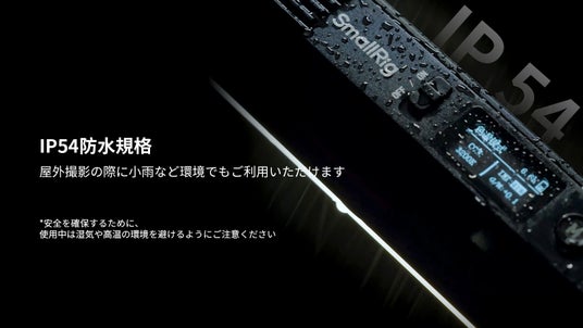 IP54の防水性能を備え、屋外撮影の際に小雨など環境でもご利用いただけます。回転式ノブと押しボタン式のスイッチを搭載し、0.96インチOLEDスクリーンも備え、照明パラメータを正確かつ迅速に調整できます。また、回転可能なバーンドアにより、簡単に光の方向とこぼれを制御できます。