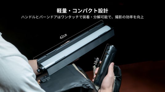 脱着式のハンドルとバーンドア、バッテリー内蔵、多様な照明効果