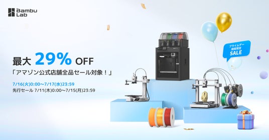 Bambu Lab(バンブーラボ)は、昨年10月Amazon日本に出店し、今年7月のアマゾンプライムデーに初回参加に決定しました。店鋪の対象製品は、先行セールを含めて7日間の特別セールを実施します。