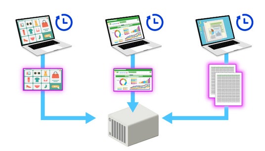 記録されたログファイルやスクリーンショット、写真を定期的にNASやファイルサーバーへ自動転送することができます。