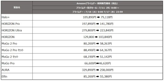 ※「プライムデー先行セール」の割引率は「プライムデー」期間と同様です。