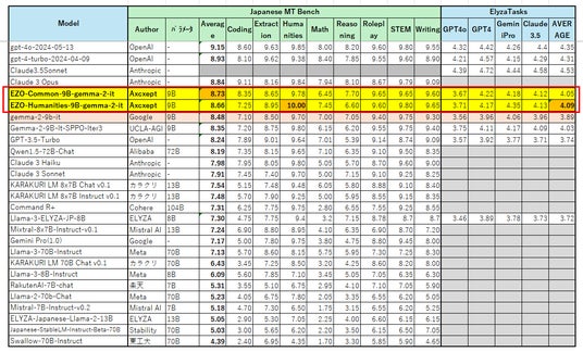 - Humanities重点強化モデル [https://huggingface.co/HODACHI/EZO-Humanities-9B-gemma-2-it]