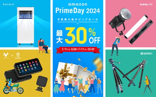 VANLINKS株式会社は2024年7月11日(木)0:00から7月17日(水)23:59までの7日間、開催されるAmazonプライムデーおよびプライムデー先行セールに参加いたします。期間中は映像制作者に人気のNANLITE LEDライトやBENRO三脚、 クラウドファンディングで2300万の支援を集めたAlienRiderバイクモニターが最大30%OFFでお買い求め頂けます。