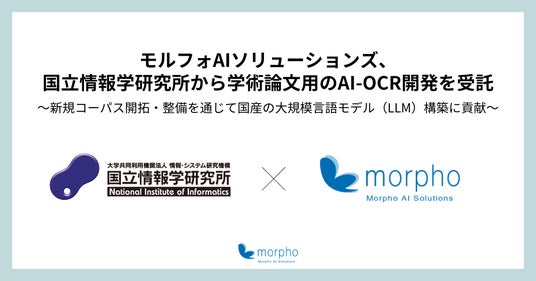 モルフォグループにおいてAIの事業化を担う、株式会社モルフォAIソリューションズ(所在地:東京都千代田区、代表取締役:神田武、以下 モルフォAIS)は、日本語LLM(Large Language Model:大規模言語モデル)の学習データを生成するための、AI-OCR(Optical Character Recognition:光学文字認識)出力サービスを2023年から提供しています。