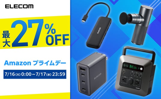 エレコム株式会社(本社:大阪市中央区、取締役社長執行役員:石見 浩一)は、Amazonで2024年7月16日(火)0:00から7月17日(水)23:59に開催される「Amazon プライムデー」において、エレコムのポータブル電源など人気製品を最大27%OFFの特別価格でご案内いたします。