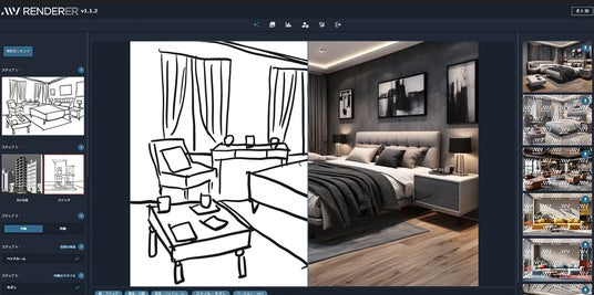 ・MyRendererとは『MyRenderer』は、ラフスケッチや写真、CGパースなどの画像をわずか1分で高品質なデザイン案としてレンダリングする次世代のAIアシスタントです。デザイン業務の効率化を促進し、クリエイティブな発想を最大限に引き出すことを目指しています。ユーザーは簡単に操作でき、特別な知識がなくても高品質なデザインを生成可能です。