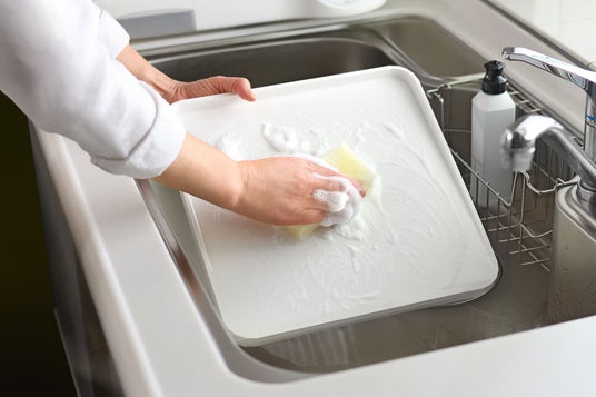 ビッグサイズで奥行き広々!作業効率アップする決定版まな板。奥に向かって、ゆるい傾斜が付いており、フチがあるので、切った食材や水分がこぼれにくくなっています。