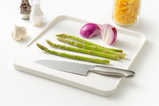 手前側はフチがないので広々。アスパラや長ネギなど長い食材が切りやすくなっています。