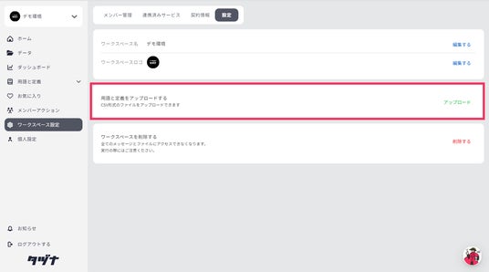 タヅナ上で、管理者の役割を持つユーザーのみ、用語と定義の一括アップロードは可能です。