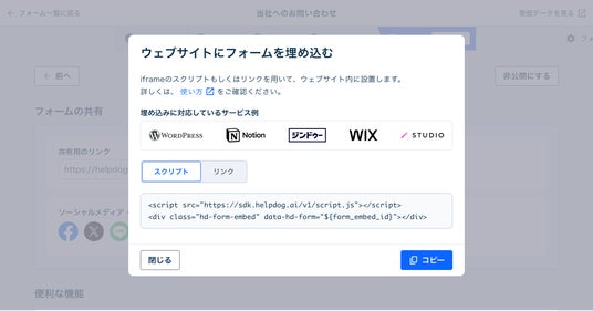 フォーム作成管理システム「ヘルプドッグ フォーム」、WordPress・STUDIO・Notionにお問い合わせフォームを簡単に設置できる「iframeフォーム埋め込み機能」の提供を開始