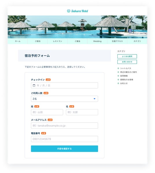 お問い合わせフォームや予約フォーム、登録フォームに対応