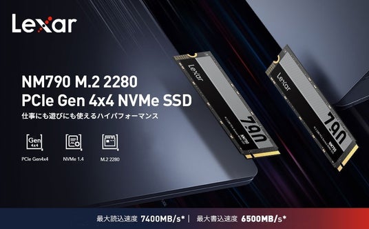 高速なデータ転送速度 LexarのNVMe Gen4は、PCIe 4.0バスを使用して、従来のNVMe Gen3よりも高速なデータ転送速度,読み込み:7,400MB/s、書き込み:6,500MB/s が実現され,より高速な起動時間、ファイル転送速度が可能となります。