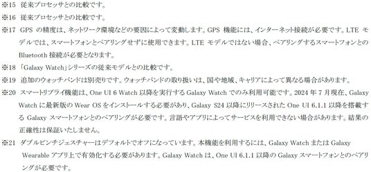 ※14 AGEs指数は、Galaxy Watch7およびGalaxy Watch Ultraのみで利用可能です。Galaxy Watchは、IEC62471安全基準を順守した光センサーを使用しています。ただし、光過敏症の方は、肌の変色や発疹などの副作用が現れる可能性があります。光過敏症の症状がある場合は、この機能の使用を避けてください。AGEs指数は、一般的なウェルネス・フィットネスとしての使用のみを目的としています。症状などの診断、病気の治療に用いる医療目的ではご使用いただけません。医療的なアドバイスは、医療専門家にご相談ください。