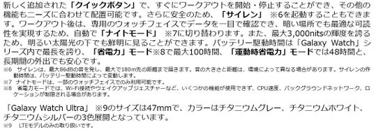 「Galaxy Watch Ultra」 https://www.au.com/mobile/product/plus-one/galaxy-watch-ultra/