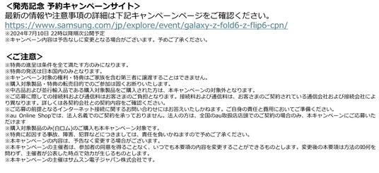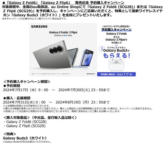 <au>Galaxy Zシリーズ史上最速で日本発売が決定!「Galaxy Z Fold6」「Galaxy Z Flip6」& ケースアクセサリー 2024年7月17日(水)予約開始7月31日(水)発売