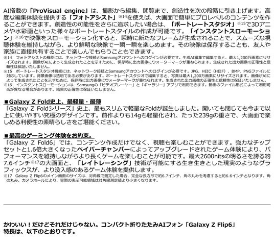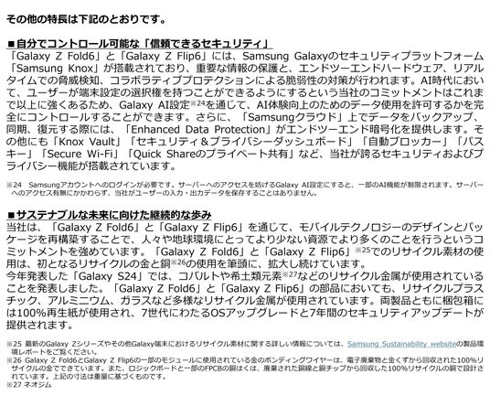 <主な仕様 : 「Galaxy Z Fold6」「Galaxy Z Flip6」>