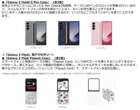 サムスン電子ジャパン株式会社(以下サムスン)は、新次元のGalaxy AIを搭載した初の最新折りたたみAIフォン「Galaxy Z Fold6」「Galaxy Z Flip6」および純正・専用アクセサリーの発売をKDDI株式会社(以下、au)および沖縄セルラー電話株式会社で発売決定したことをお知らせいたします。