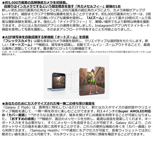「Galaxy Z Fold6|Z Flip6」の共通特長は下記のとおりです。