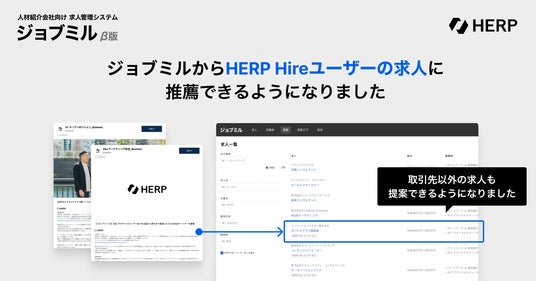 人材紹介会社向け求人管理システム『ジョブミル』β版、『HERP Hire』利用企業の求人に推薦できる機能を提供開始