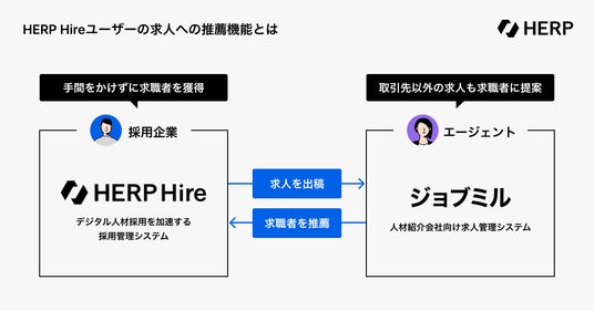 株式会社HERP(本社:東京都品川区、代表取締役:庄田一郎、以下HERP)は、人材紹介会社向け求人管理システム『ジョブミル』β版( https://www.jobmiru.cloud/ )において、『HERP Hire』利用企業への推薦機能の提供を開始したことをお知らせいたします。