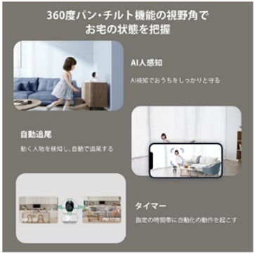 手頃な価格で入手できるHomekitセキュアビデオ対応スマートカメラ。Homekit、Alexa、Google Homeなどのエコシステムで音声操作、遠隔操作、またはタイマー設定などに完全対応。AI人体検出および自動追跡機能により、動く人物を自動的に追跡することもできます。超鮮明300万画像および360度の視野角、双方向通話、プライバシー保護などの機能で、見守りと防犯を任せられる一台。