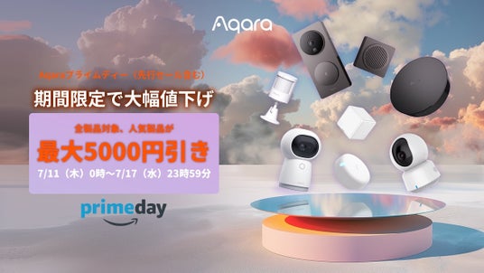 累計販売台数4000万越えるlotスマートホームデバイスブランドAqaraは、日本におけるスマートホーム家電の普及を提案すべく、7/11(木)~7/17(水)(先行セール含む)の「Amazonプライムデー」期間中、Amazon公式サイト (https://amzn.to/3XEltTC) にて最大30%の期間限定セールで販売いたします。