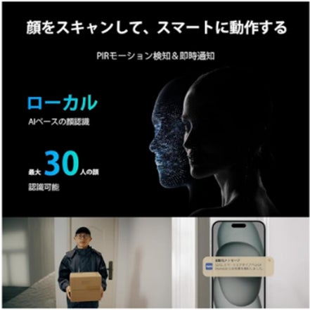 スマートドアベルG4はローカル顔認識機能を搭載しており、家族・友人・要注意人物など関係者の顔を登録し、家族が帰って来たら「おかえり」シーンをカスタマイズしたり、不審者が現れたらプッシュ通知を受け取るなどの自動化を実現できます。なお、ネットワークが切断されている場合でも、顔認識機能は影響を受けませんので安心して利用できます。