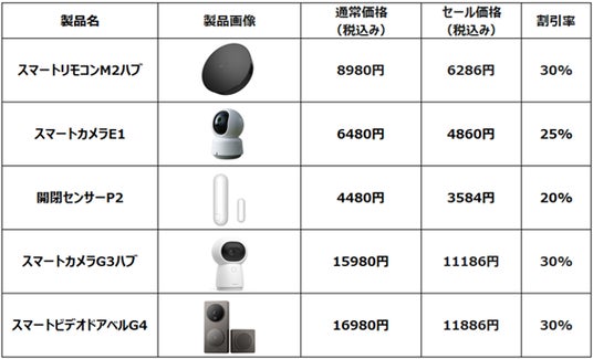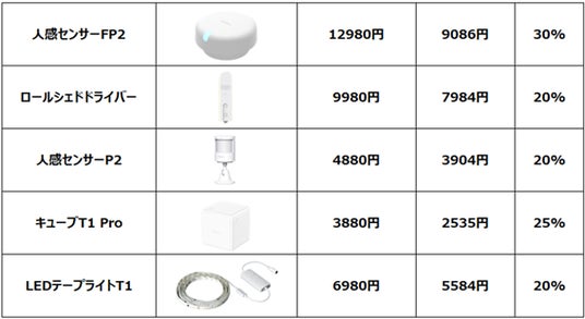今回のプライムデーキャンペーンでは、「スマートビデオドアベルG4」や「人感センサーFP2」などの主要製品を含むAqara全20製品を最大30%OFFと大変お求めやすい価格でご用意いたしました。期間限定のイベントですので、気になる商品はお早目にお買い求めください。