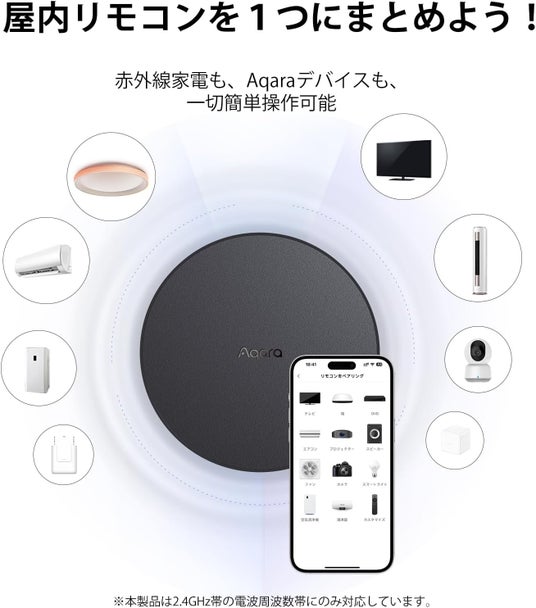 赤外線リモコン機能付きのスマートホームハブで、従来の赤外線家電を一つにまとめて、いつでもどこでも一括操作が可能に。赤外線家電とAqaraデバイスを連携し、スケジュール、環境情報などに応じて操作することができます。さらに。Matterに対応し、M2ハブに接続したAqaraのZigbeeデバイスをApple Homekit、Amazon Alex、Google Homeなどの主流エコシステムに統合することが可能です